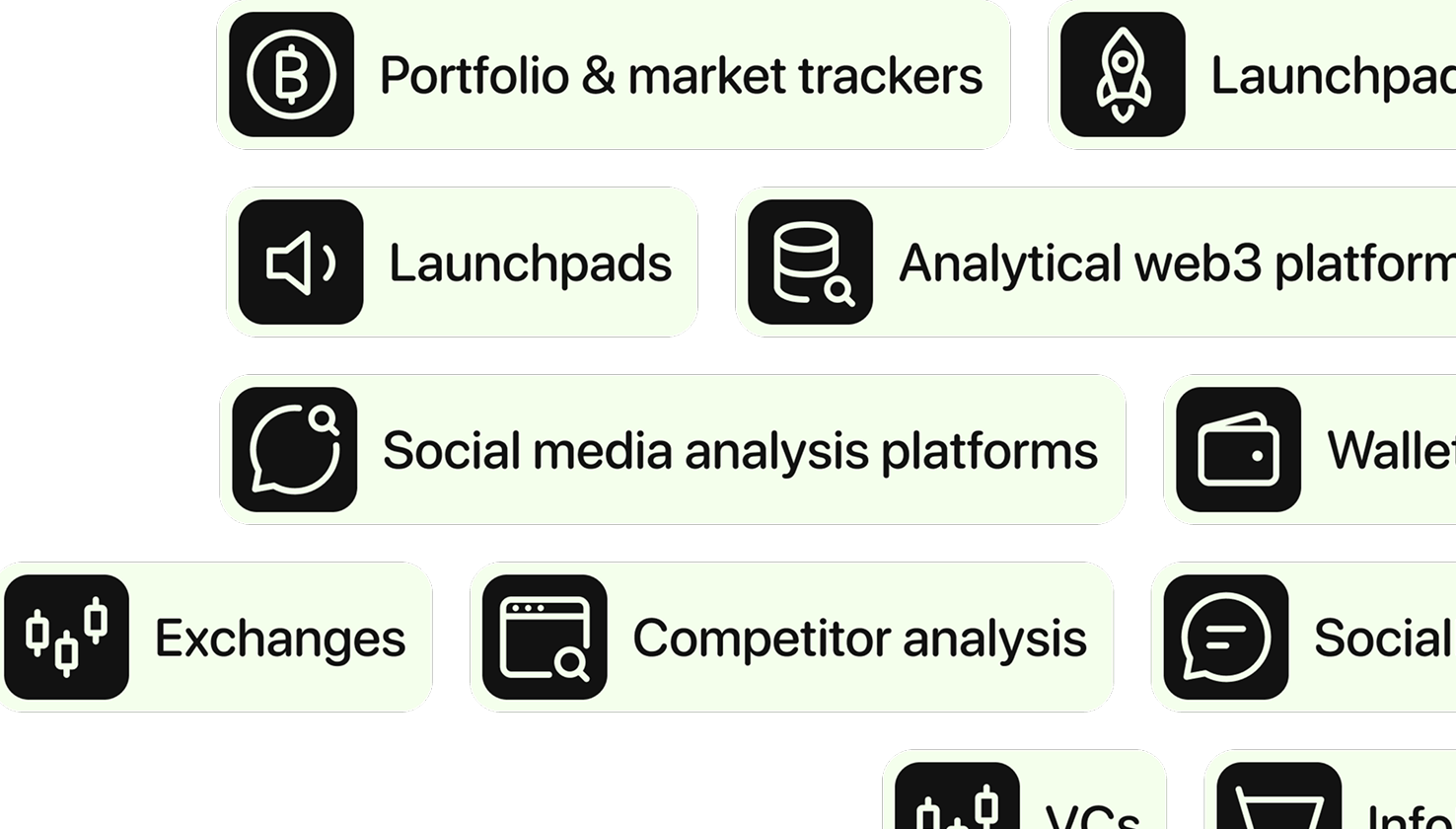 A powerful Social Intelligence Layer for web3 data and narrative signals. Delivering smart scoring, behavioral trends and audience segmentation for any Web3 account.
